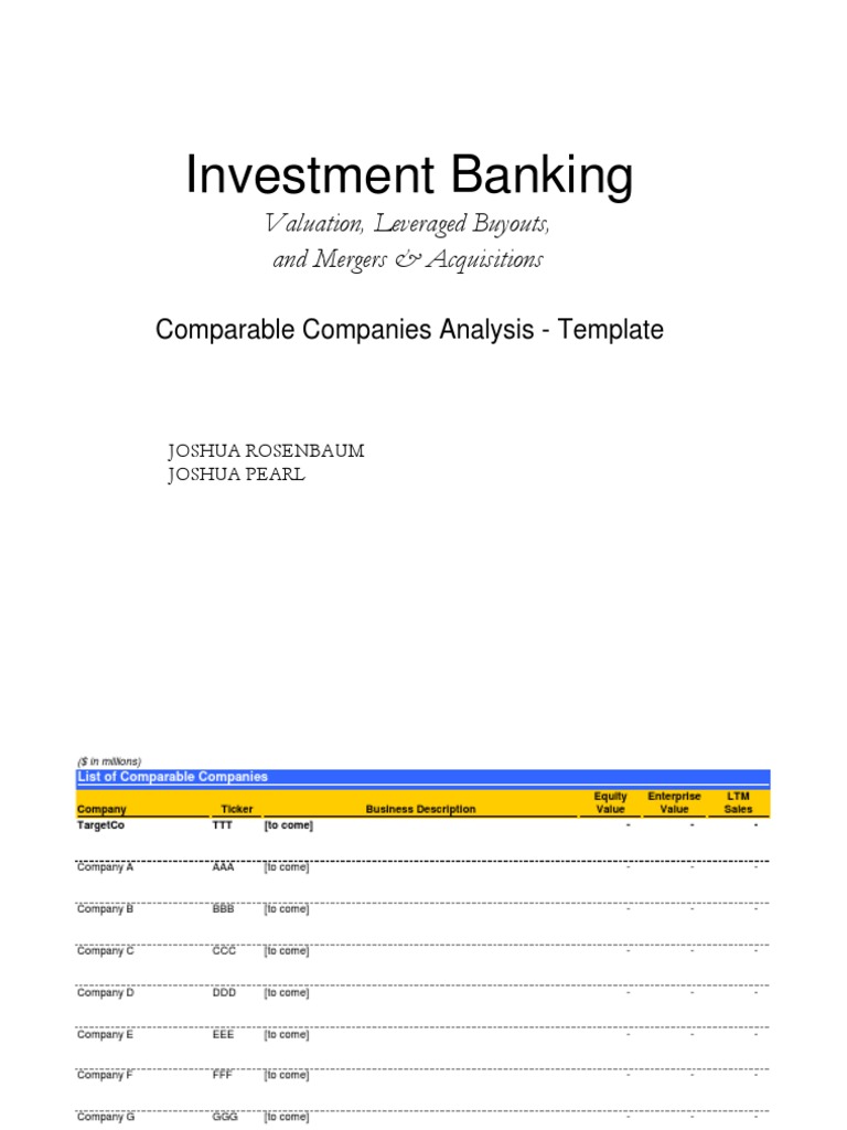 MGT 185: Investment Banking . Undergraduate Course, Winter 2014 leveraged buyouts and mergers and acquisitions. The course will utilize Investment Banking Valuation, Leveraged Buyouts and Mergers and Acquisitions . Joshua Rosenbaum and Joshua Pearl . Second Edition University ... View Full Source